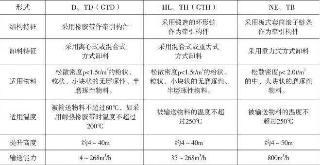 常用斗式提升機類型: